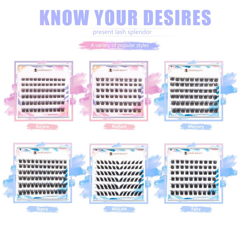 - 1: Innovative breakthrough: The lash clusters provided by EHSZM Beauty are infused with a brand-new softening factor, bringing an unprecedentedly soft touch. Say no to the plastic feel and embrace a new height of comfort