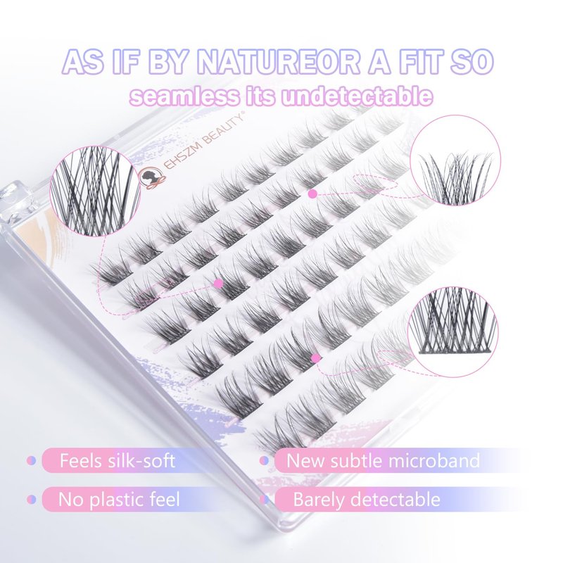 Discover perfect eyelashes with EHSZM BEAUTY's high-quality lightweight lash clusters. Thanks to the addition of a brand-new softening factor, these lash clusters have an unprecedentedly soft touch. The thin band design is more comfortable. They are natural and lightweight, and when paired with high-quality professional glue, they are suitable for all-day wear. Made of new materials, they offer high cost performance without sacrificing durability or comfort. Highly favored by beauty lovers and professional beauticians.