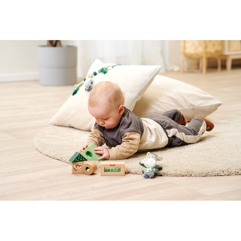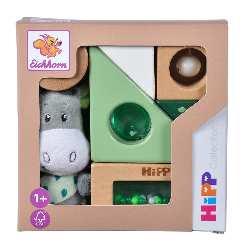 - Eichhorn Baby HiPP Collection sound building blocks: the 7 sound blocks and the plush donkey of the Eichhorn Baby HiPP Collection in different colours and shapes are the perfect toy for all little explorers.