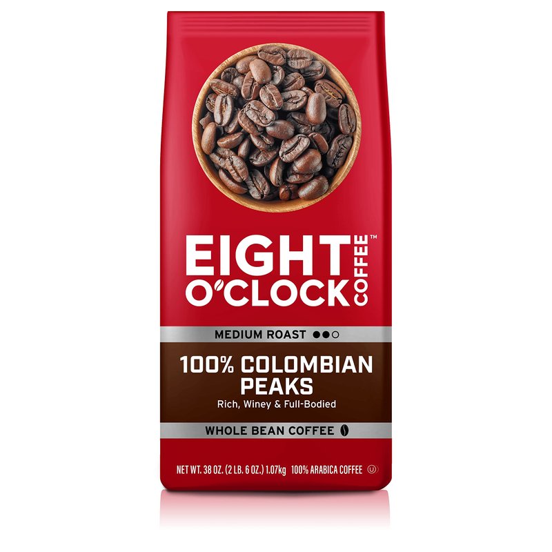 Eight O'Clock Coffee 100% Colombian Peaks, 38 Ounce, (Pack of 1) Medium Roast, Whole Bean Coffee, Rich, Winey & Full Bodied