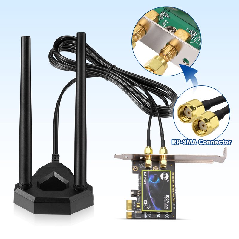 - Omnidirectional dual WiFi antenna; Dual band 2.4GHz and 5.8GHz; Support 802.11 b/g/n/ac/ax/wifi 6