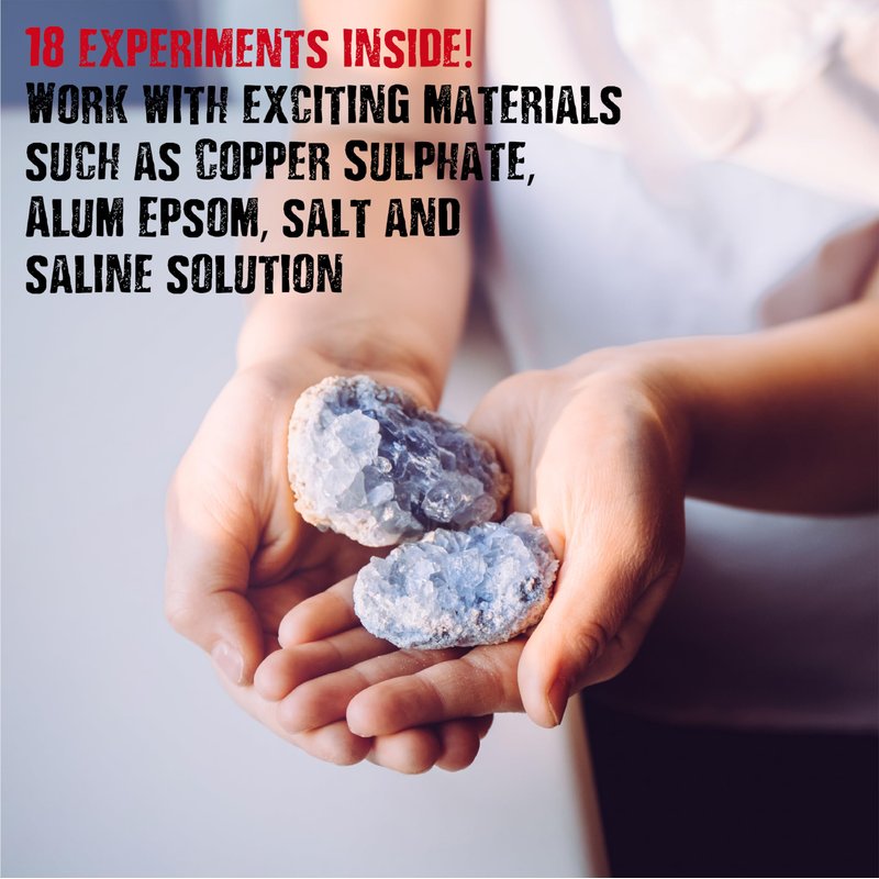 - EDUCATIONAL HANDS ON SCEINCE: introduce kids into the world of STEM/ steam research and analytical thinking through each science experiments: The experiments will illuminate kids on how crystals are formed and which chemical materials are required. Kids will be working with exciting materials like Copper Sulphate, Alum, Epsom Salt & Saline Solutions, to create different types of funky homemade crystals. How exciting is that!