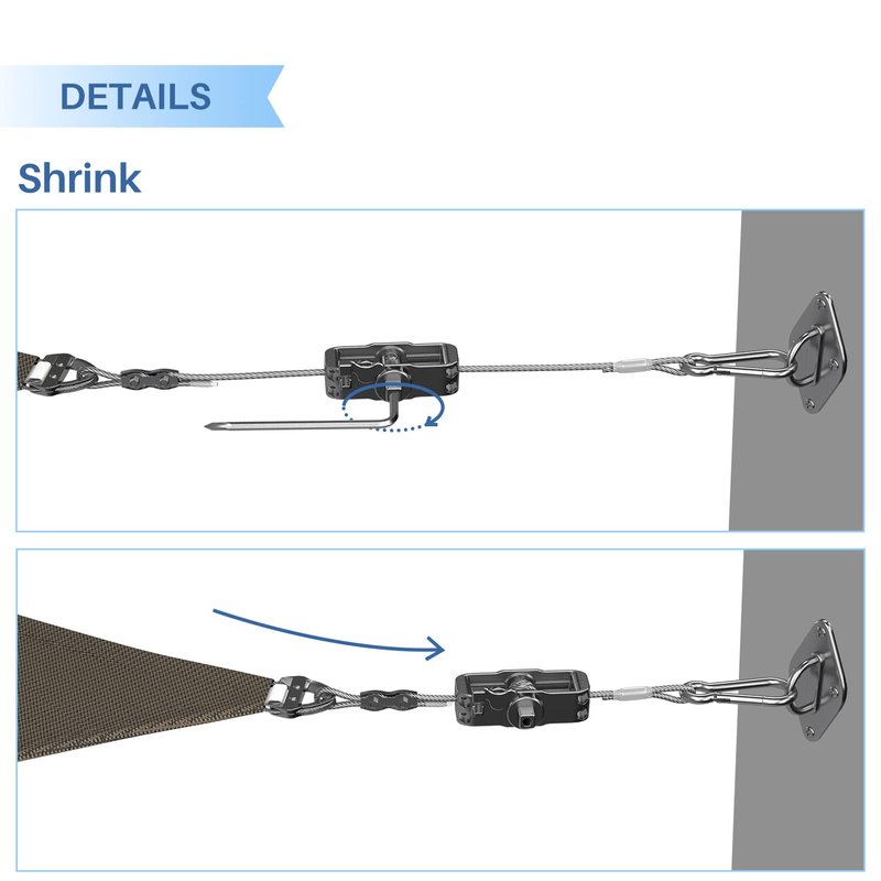 - EASY TO INSTALL - Our sun shade sail kit is easy to install, you can crank the winch to further secure the sun shade sail to a wall or post.