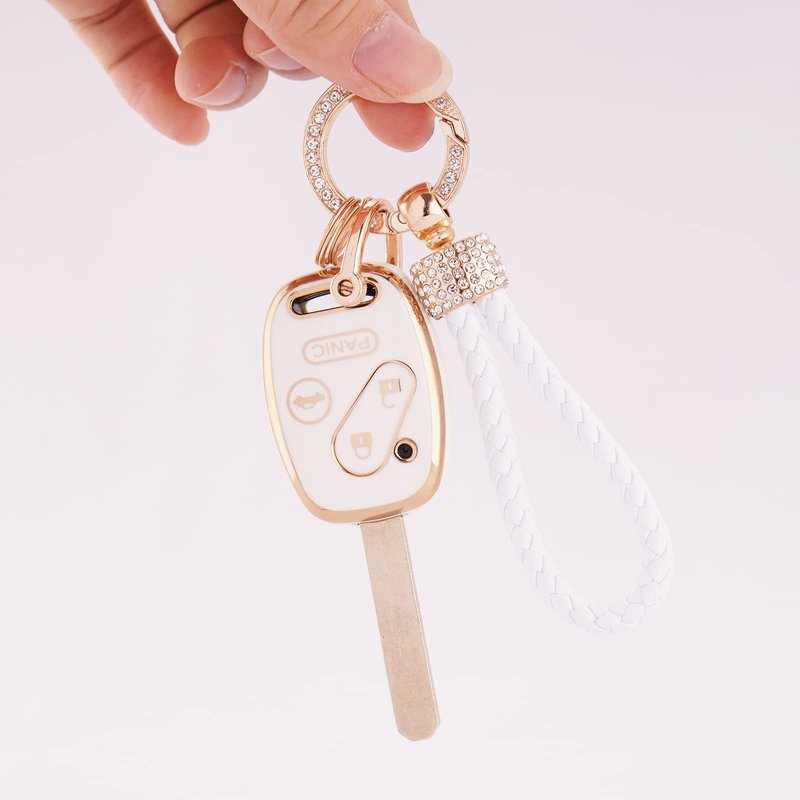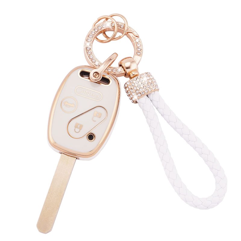 EKALA for Honda Key Fob Cover with Keychains Lanyard, 4 Buttons Soft TPU Keys Shells Girly White Key Fob Protector Compatible with Honda Accord Accord Crosstour Civic CR-V Pilot Element(Hod-4R)
