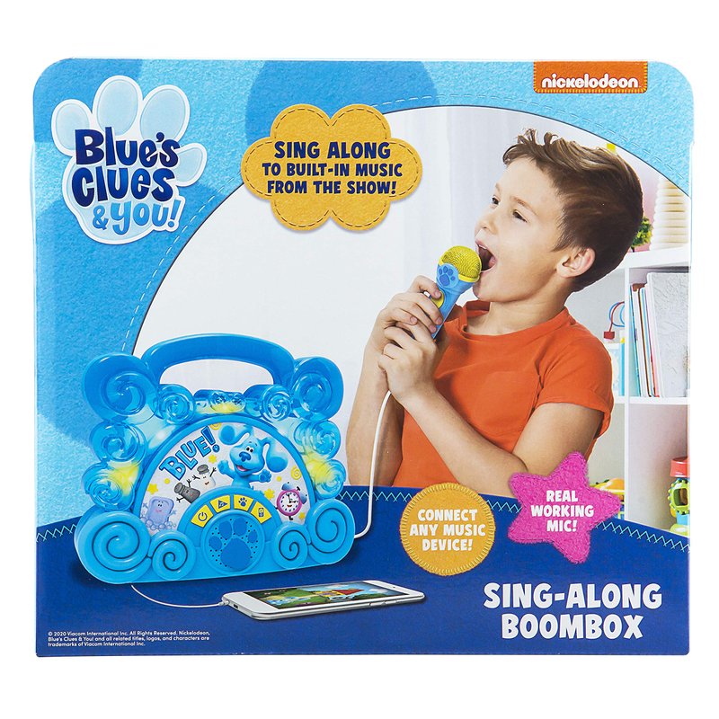 eKids Blues Clues Toy Sing Along Boombox for Kids, Musical Toy for Toddlers, Kids Boombox with Microphone and Built-in Music, Connects to Mp3 Player Aux in Audio Device