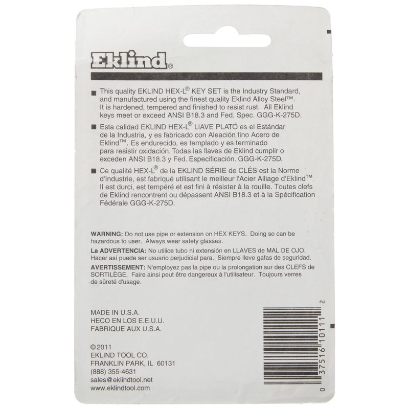 - IDENTIFY YOUR TOOLS- Inch sizes are color coded in red so you can reach for the correct tool quickly.KEEP YOUR KEYS ORGANIZED- A plastic holder firmly holds each key in a sized-marked hole so you always have the size you need at-hand.MEETS OR EXCEEDS ALL APPLICABLE STANDARDS- EKLIND tools meet or go beyond the standard regulations set forth in ANSI, ASME, RoHS, REACH, CA Prop 65 and Dodd-Frank Conflict Minerals Legislation