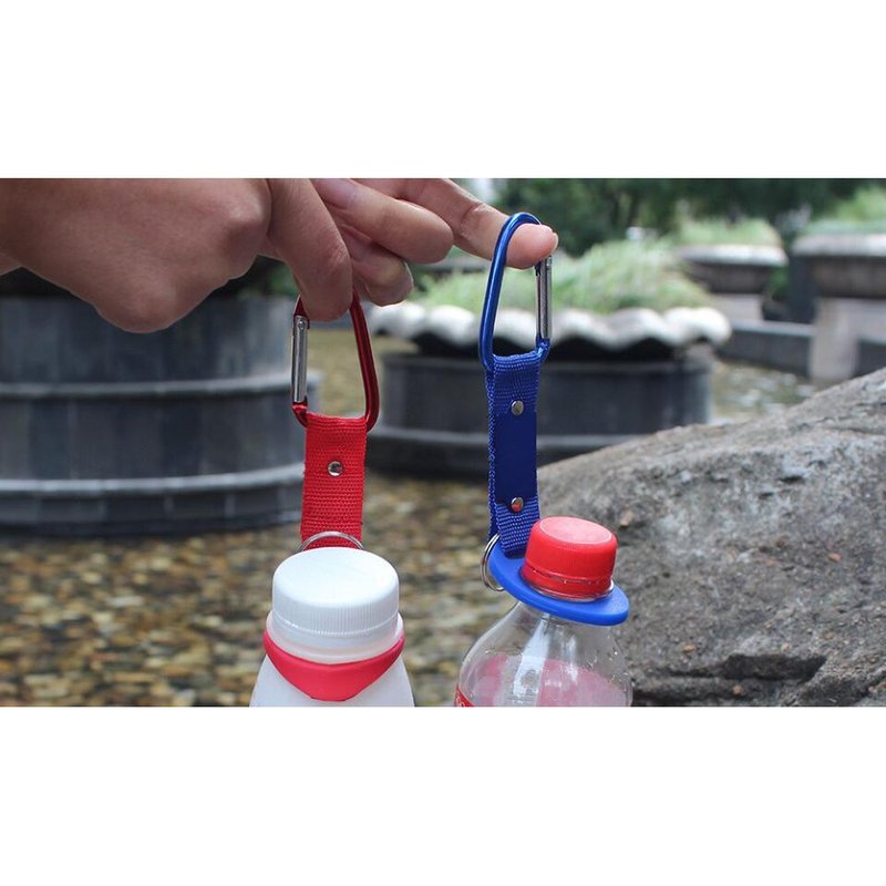 • Aluminum hook + nylon straps + metal key ring + silicone bottle holder ring.