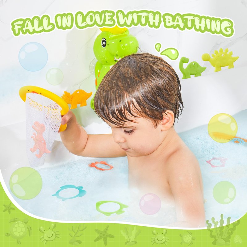EKUEASYKU Dinosaur Bath Toys for Kids Ages 1-3 2-4 4-8 Toddler Bath Toys Whirling Waterfall Water Toys Fishing Games Bathtub Bath Time Tub Toys Girls Boys Color Movement Learning