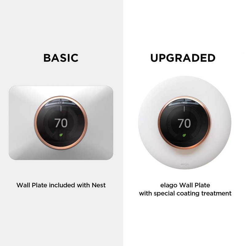 - 【LUXURIOUS DESIGN】 The design of the Wall Plate Cover was inspired by the design of the Nest Learning Thermostat; the plate is curved to act as a natural continuation of the thermostat's design. Elago Wall Plate perfectly creates a modern look that can't be beat and covers up the previous hole or mark.