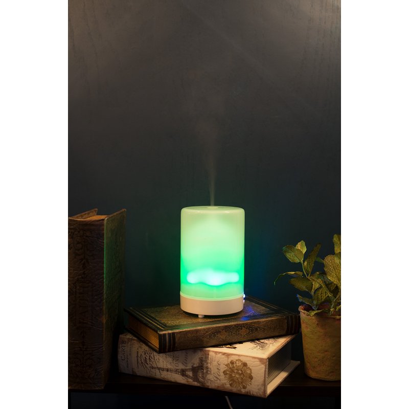 Beautifully designed diffuser; Continuous mist that lasts up to 8 hours; Automatic shut-off feature.. Refresh any room; Pour water to fill line inside of diffuser basin; Just add a couple sprays or drops of essential oils.. Setting for LED light can be used in changing color mode or can be set to one color (8 color options in which to choose); Plug-in to any standard electrical unit.. Diffuser cover is made of a classic frosted glass; Water and oil basin made of thick plastic casing; Buttons and settings safe and easy to use in pedestal base; UL product safety approved.. Whole unit measures approximately 5.75 inches in height and 3.5 inches in diameter; Ships in gift box packaging..