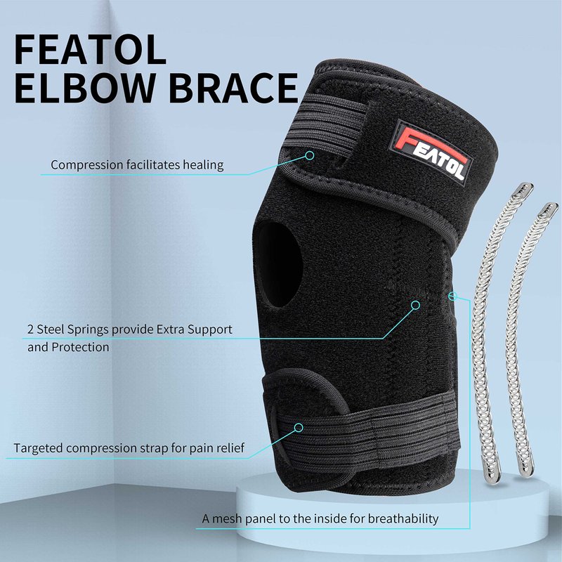 • [Provide Comfortable Compression] This elbow brace for tendonitis and tennis elbow is made of durable and breathable materials. Come with 2 springs in the elbow brace, which are comfortable, breathable, and skin-friendly. The bursitis elbow brace is suitable for both day and night wear to protect the injured elbow. And provide you with stable support.