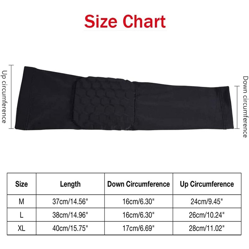 - Protection and Safety - The honeycomb anti-collision technology is composed of thick honeycomb cushions, which provide advanced protection against scratches and elbow hits; maintain the temperature of the arm muscles and increase blood flow and circulation. The soft silicone anti-skid strip is comfortable to wear, and can prevent the arm from slipping off during exercise, and keep the elbow in place with a tight grip.