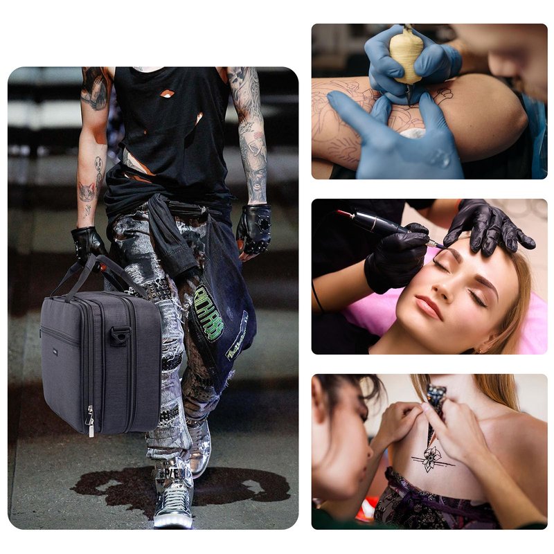 - 【Multiple Pockets】This well-designed tattoo supplies carrying organizer offers a range of pockets tailored to suit your needs. Multiple pockets for Tattoo Power Supply, tattoo pen, tattoo ink, and tattoo tools. You'll find dedicated compartments perfect for safeguarding your tattoo supplies.