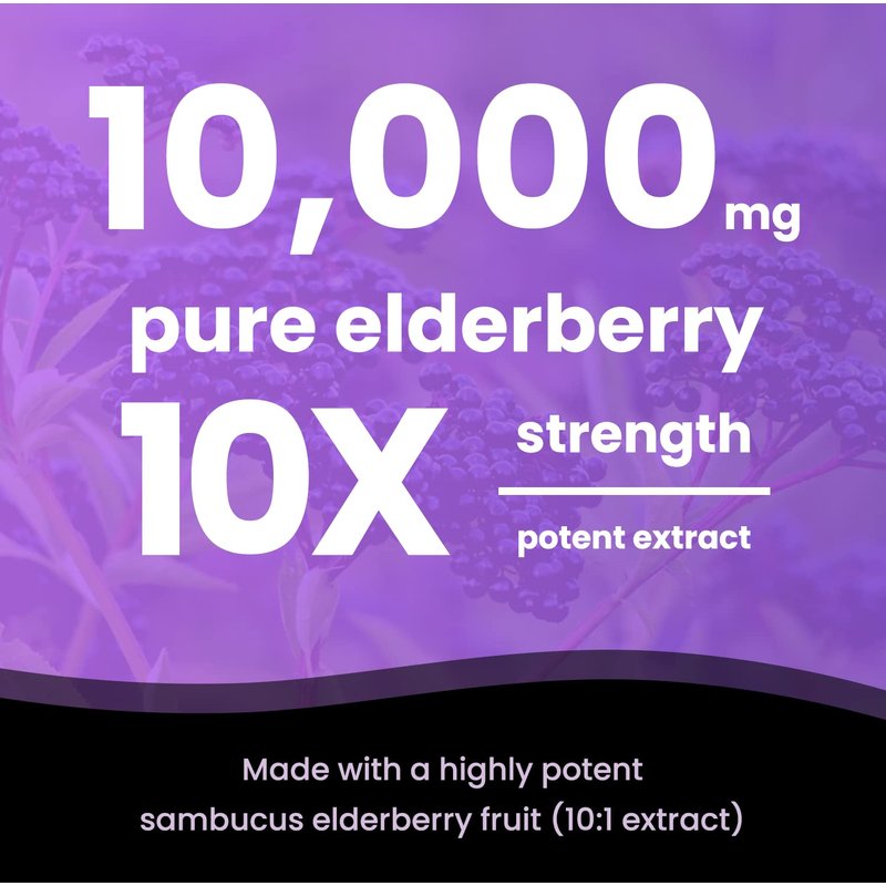 - Way More Elderberry Per Serving (10,000mg) - NutraChamps Elderberry 5-in-1 supplement delivers a highly potent 10X strength black elderberry extract (10 pounds of fresh fruit used to make 1 pound of extract) to provide powerful protection & support.