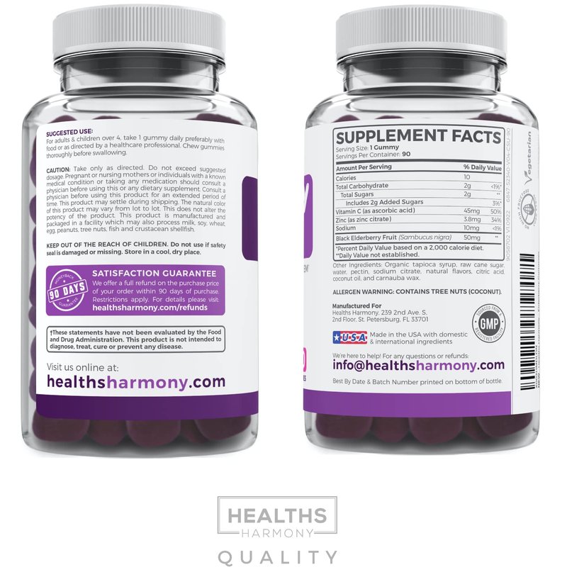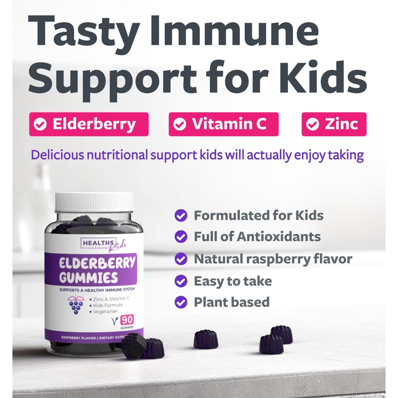 - Keep Your Kids Well: These Elderberry, Zinc, Vitamin C gummies let you give your kids what they need in a fun little gummy rather than a handful of separate capsules, pills and powders. With safe amounts of the active ingredients and just enough real sugar to make them a yummy treat rather than a chore, Healths Harmony immune booster gummies are a smart addition to your kids’ routine. Click add to cart and grab your three-month supply today!
