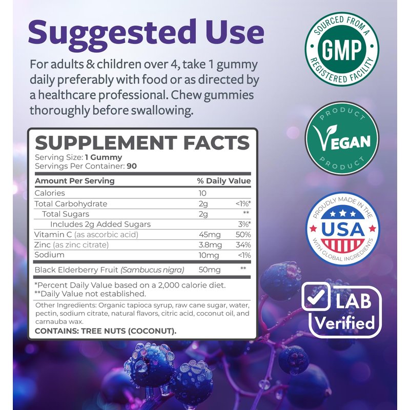 - Delicious Immune Support: With a combination of Zinc, Vitamin C, and Black Elderberry, all wrapped up in a delicious berry flavored treat they will actually want to take, these gummies are the ultimate immune support for kids. Just one gummy goes a long way toward insuring against deficiencies in Vitamin C and Zinc, crucial immune system components.