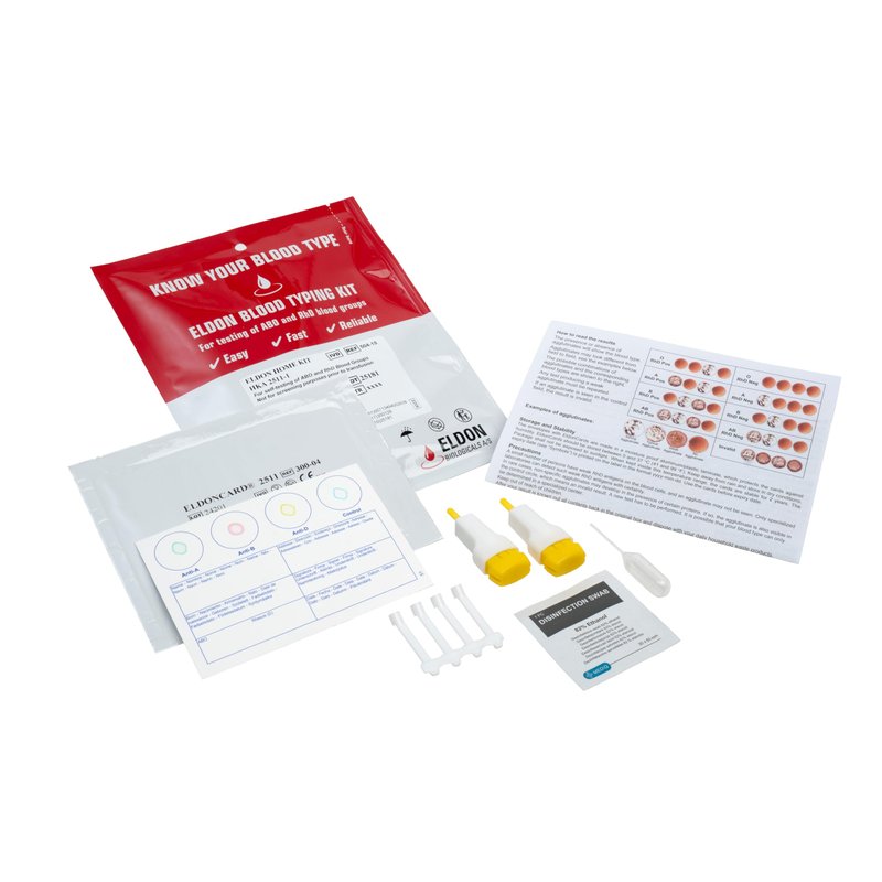 Eldoncard INC Blood Type Test (Complete KIT) - Find Out if You are A, B, O, AB & RH- Results in Minutes - Air Sealed Envelope, Safety Lancet, Micropipette, Cleansing Swab - 1 Pack