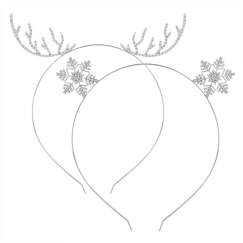 - Includes: 2 pieces christmas party headband, One rhinestone reindeer horn headband and One rhinestone christmas snowflake headband