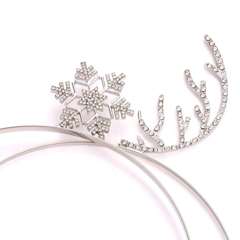 - This fun christmas reindeer antler headband/snowflake christmas headband is built onto a metal headband and features a pair of antlers/snowflake and emblished with pave crystal rhinestone