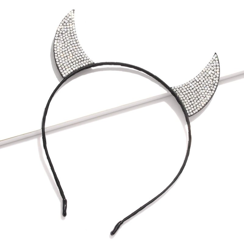 - Sparkly devil horns are on a metal headband and embellished with red/silver faux rhinestone