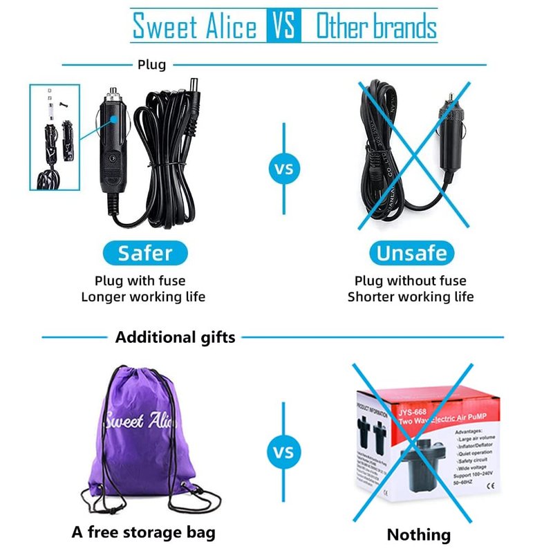 - 【2 IN 1 POWER ADAPTOR】Comes with a 100-240V AC power adaptor and a 12V DC car power adaptor. Our air pumps are so powerful! Not only ideal for home use, but also perfect for outdoor activities.