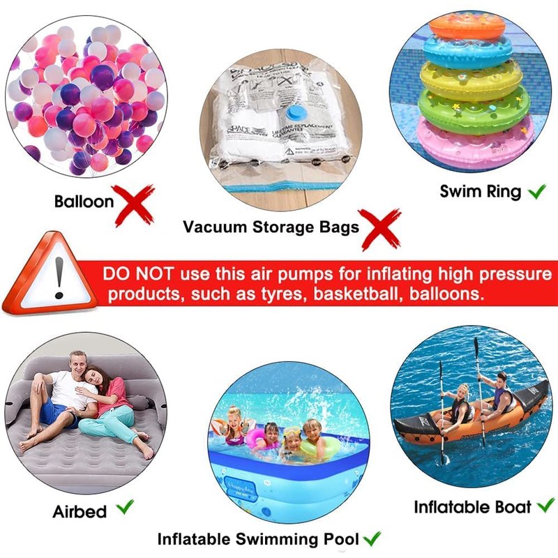 - 【POWERFUL ELECTRIC AIR PUMP】Quick-fill and High Pressure Design of this portable electric air pump for faster and efficient inflatable experience; Is a powerful inflator and deflator, and handles any work that is difficult for manual air pump.