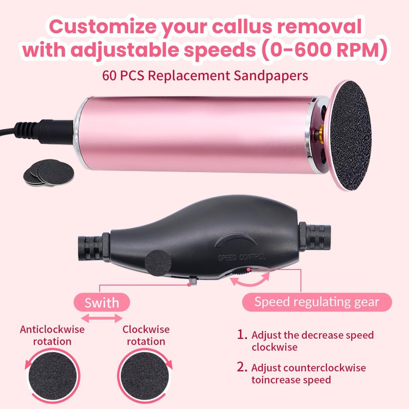 Adjustable Speed Settings: Customizable for varying callus severity.