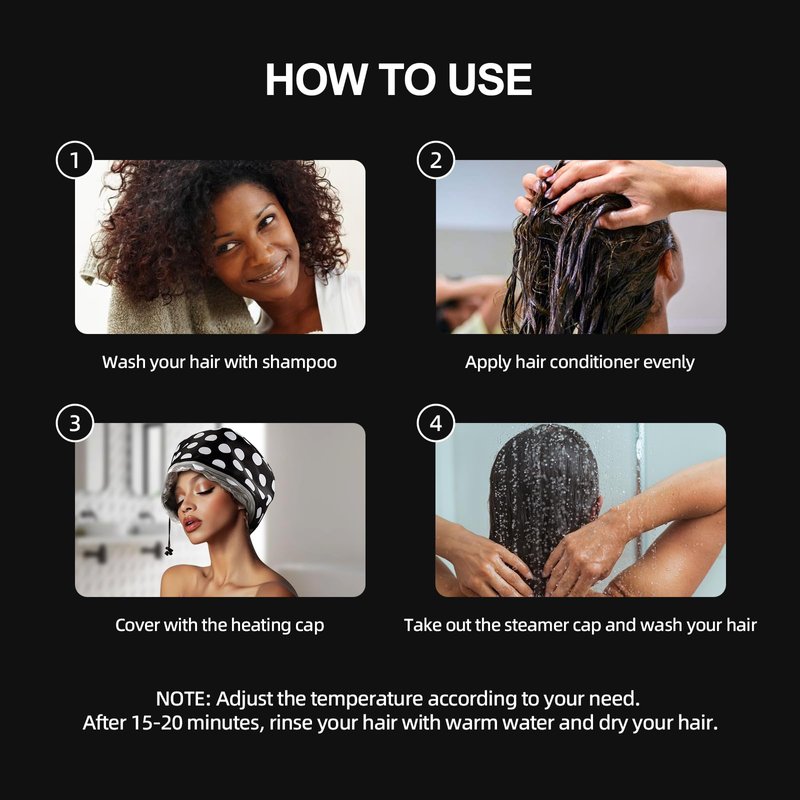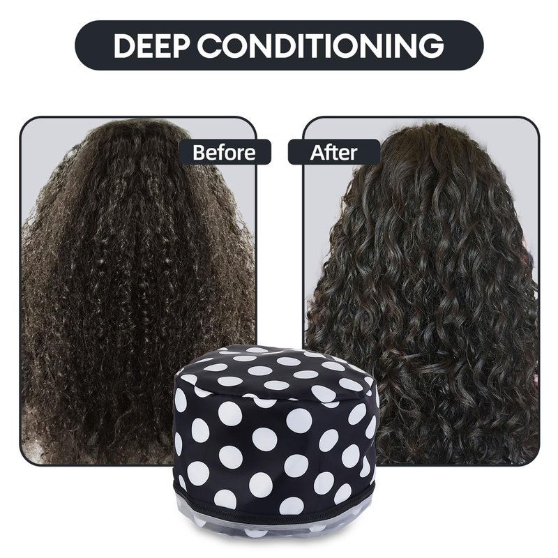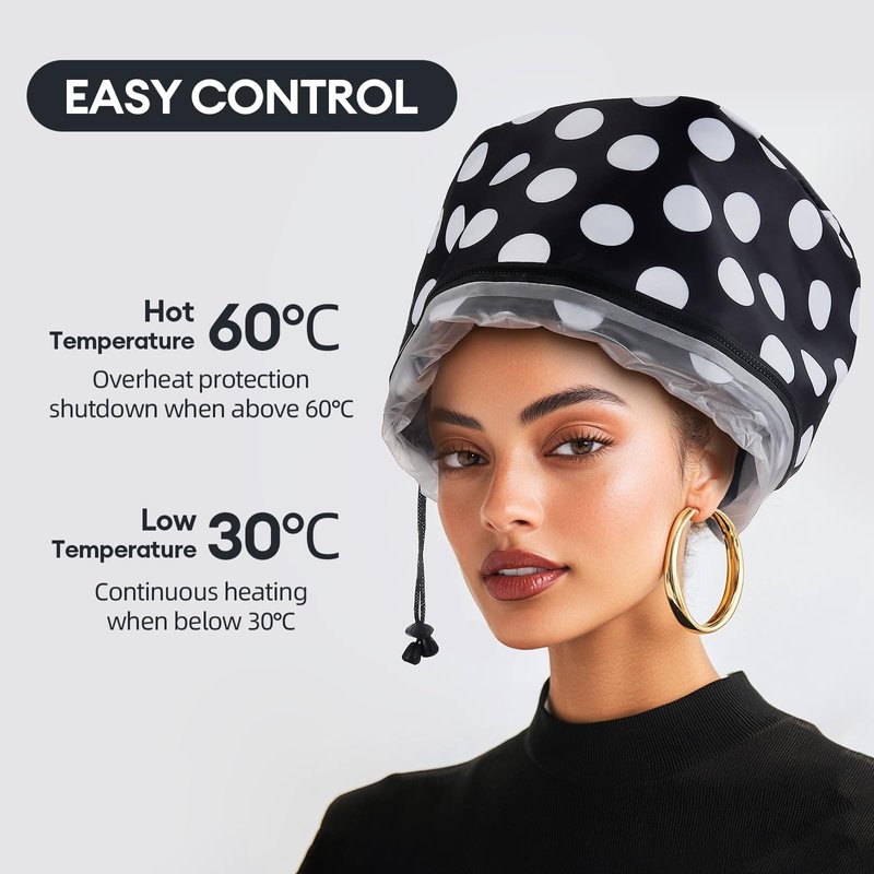 Electric Hair Steamer Cap with 2 Mode Temperature Control, Removable Washable Thermal Spa Hat for Home Hair Care (Black & White)