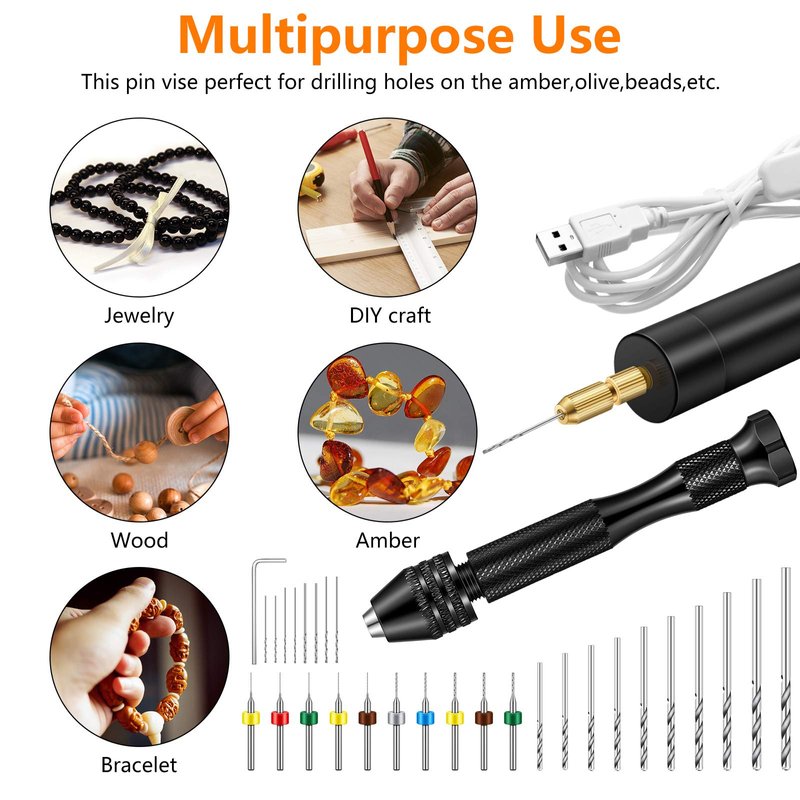 Electric hand drill and pin vise hand drill are designed for drilling small and precise holes for resin molds, crafts, DIY handcrafts making projects, convenient for you to make necklaces, earrings, bracelets, key chains, pendants, bag ornaments and other jewelry resin crafts.