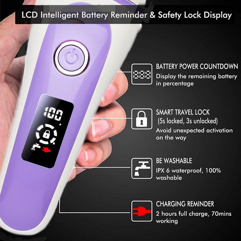 Electric Lady Shaver Bikini Trimmer Wet & Dry Rechargeable Cordless Painless Electric Razor for Women, LED Display Razor for Legs Underarms (Purple)