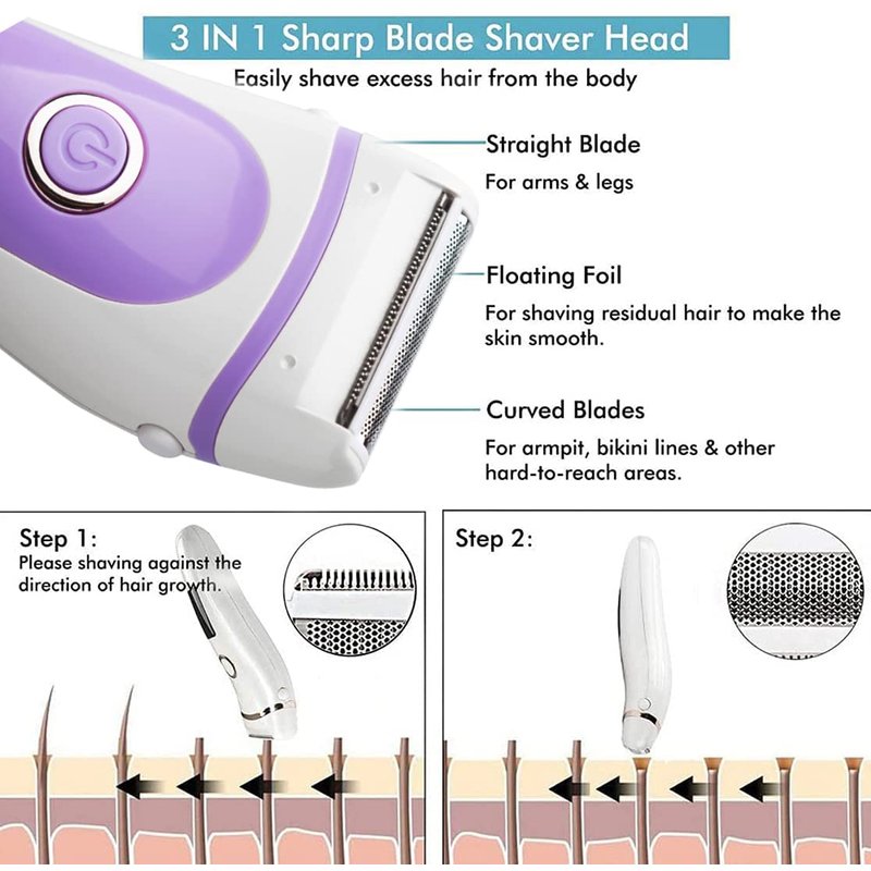 Advanced 3-in-1 Rechargeable Electric Lady Shaver with Smooth Shave Technology provides you a comfortable, closely, and convenient shaving experience.