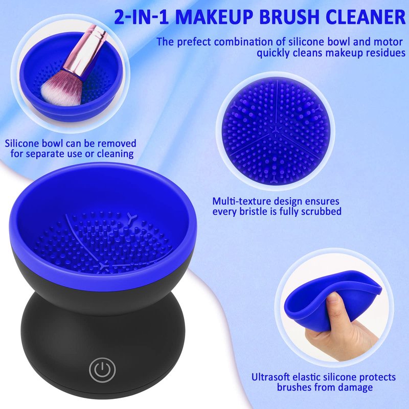 - ♔【US Patent & 2-IN-1 Efficient Combination 】 The makeup brush cleaner machine are Perfect Combinations of a Silicone Cleaning Pad and Machines that can deeply clean the brushes in less than a minute. Portable automatic USB cosmetic brush cleaner tools for all-size beauty makeup brush sets make applying makeup much faster and more comfortable.