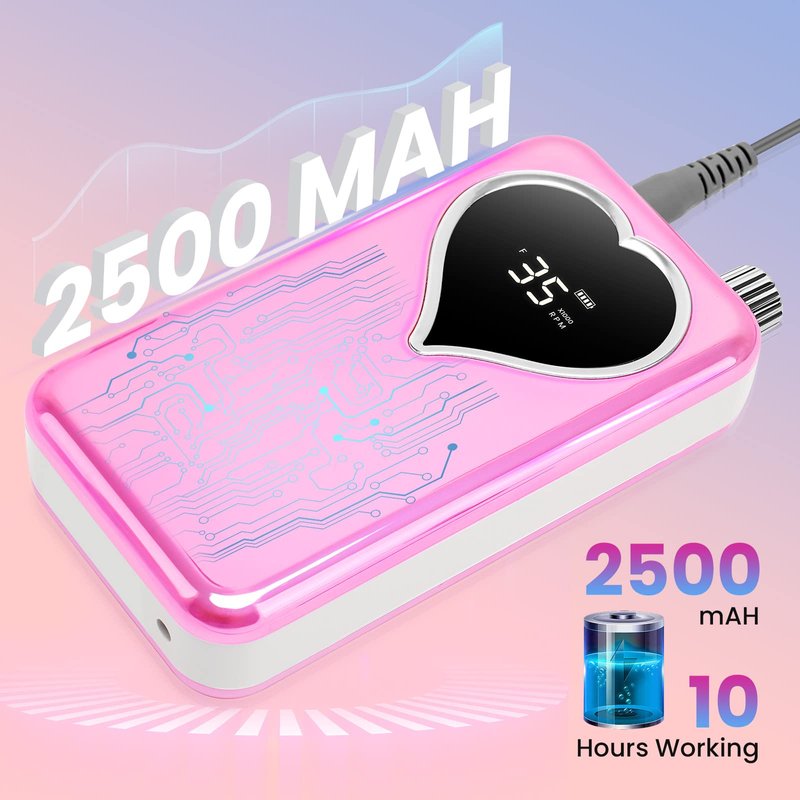 - 💅🏻【Rechargeable With 2500Amh battery】- FTOYIN cordless nail drill with a built-in 2500mAh lithium battery,which lasts about 10 hours on full charge. When your phone runs out of battery, rechargeable nail drill can also be used as a power bank.