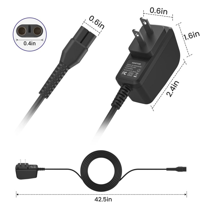 Electric Shaver 4.3V Adapter Power-Supply Cord, Shaver Charger Power Cord for Philips A00390 4.3V 70mA for Philips Norelco oneblade Charger QP2520 Compatible with QP2520/90, QP2520/70, QP2520/72