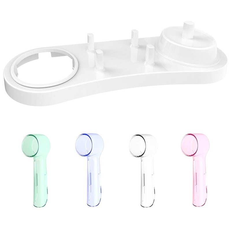 Electric Toothbrush Holder with 1 Charging Stand Slot, 1 Toothbrush Stand and 4 Toothbrush Head Stands + 4 PCS Toothbrush Head Covers for Oral B