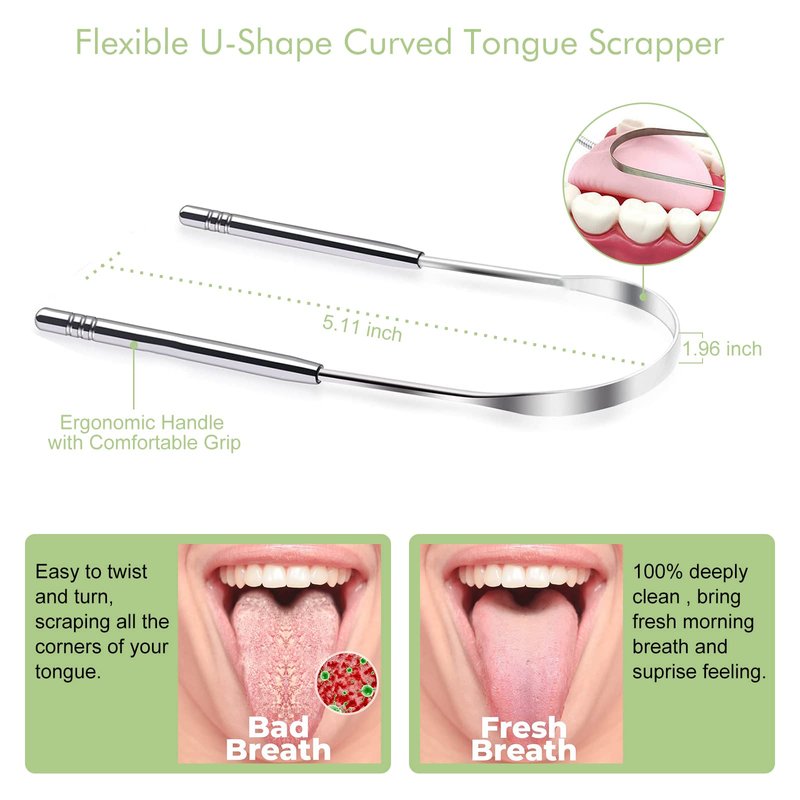 - { Surprise Tongue Scraper Gift } The link rod part also come with our gift of tongue scraper cleaner. 100% stainless steel meterial tongue scraper, safe and easy to clean. The U - shape curved tongue scrapper are flexible enough to twist and turn, scraping all the corners of your tongue. Our tongue scraper will clean your tongue so thoroughly and get rid of bad breath. Equipped with a storage box of the same material, clean and sanitary, also easy to carry for trip.