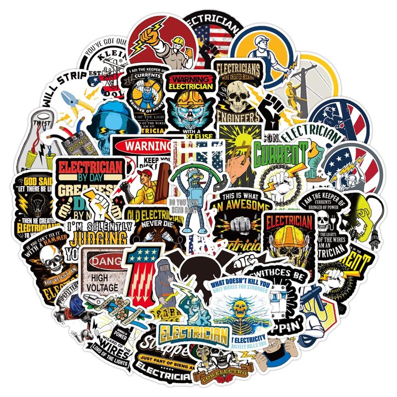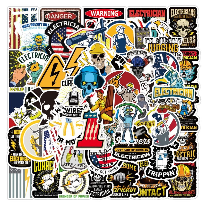 Electrician Stickers for Hard Hats,50pcs Electrician Hard Hat Stickers Funny Cool Trendy Electrician Waterproof Vinyl Decals for Helmet Toolbox Water Bottle Electrical Equipment Bumper