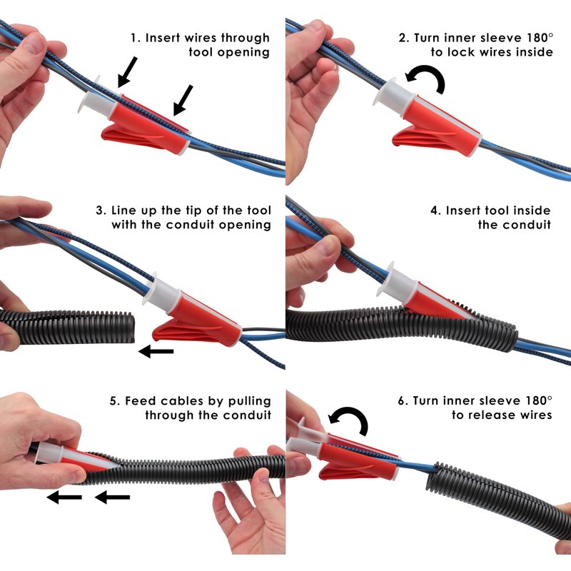 Electriduct Wire Loom Insertion Tool Set for 3/8" to 2" Conduit Sleeving Installation
