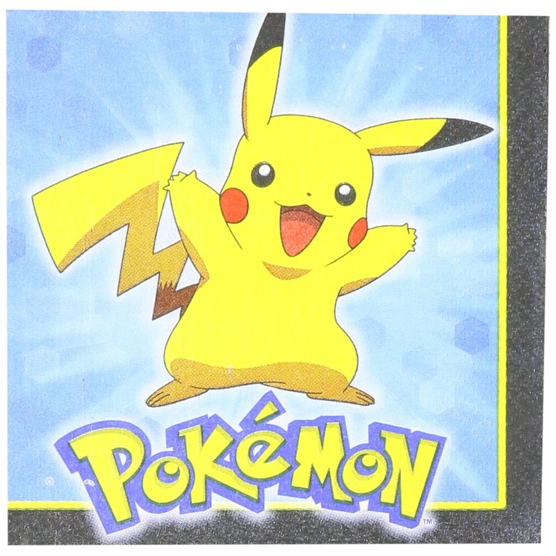 Electrifyingly Cute Pikachu & Friends Birthday Party Beverage Napkins Tableware, Pack Of 16, Blue , 5" X 5", Paper