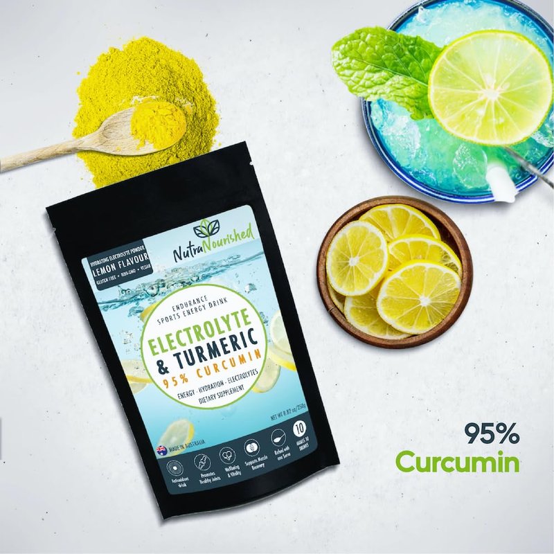 Discover the ultimate solution for hydration, recovery, and performance with our Electrolyte Powder Infused with 95% Pure Organic Curcumin from Turmeric. Carefully formulated to cater to the needs of athletes, fitness enthusiasts, and health-conscious individuals, our premium sports energy drink mix offers a comprehensive approach to wellness. Crafted with a blend of natural electrolytes, including sodium, potassium, magnesium, and calcium, our electrolyte supplements are designed to replenish essential minerals lost during physical activity or sweating. This electrolyte turmeric drink Combined with the potent benefits of organic turmeric curcumin powder, our formula supports faster muscle recovery, reduces inflammation, and promotes overall well-being. Enjoy the refreshing taste of organic lemon powder in every sip, sourced from high-quality ingredients to deliver a burst of natural flavor without any artificial additives. Our sugar-free hydration powder ensures guilt-free hydration, catering to those seeking a healthier alternative without compromising taste or quality. Convenient and versatile, our lemon electrolyte powder hydration mix is perfect for on-the-go use. Whether you're hitting the gym, embarking on an outdoor adventure, or simply need a quick pick-me-up throughout the day, our hydration powder sugar-free offers unmatched convenience and hydration support.