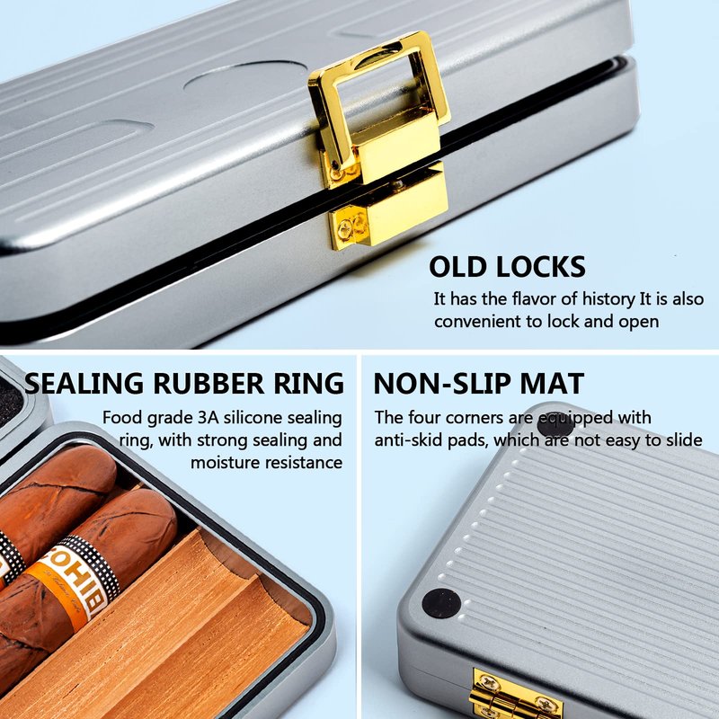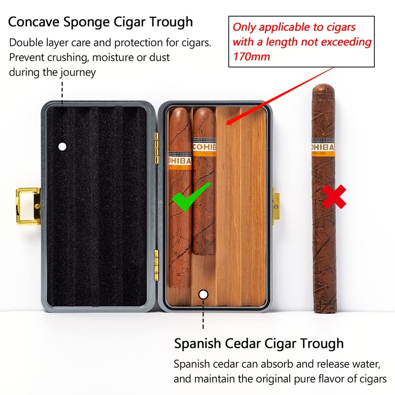 - 1. Keep your cigars fresh and secure with this portable Aluminum Cigar Case, complete with a spanish cedar cigar tray and concave sponge cigar slot for optimal protection.