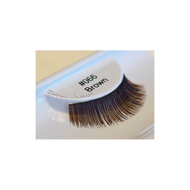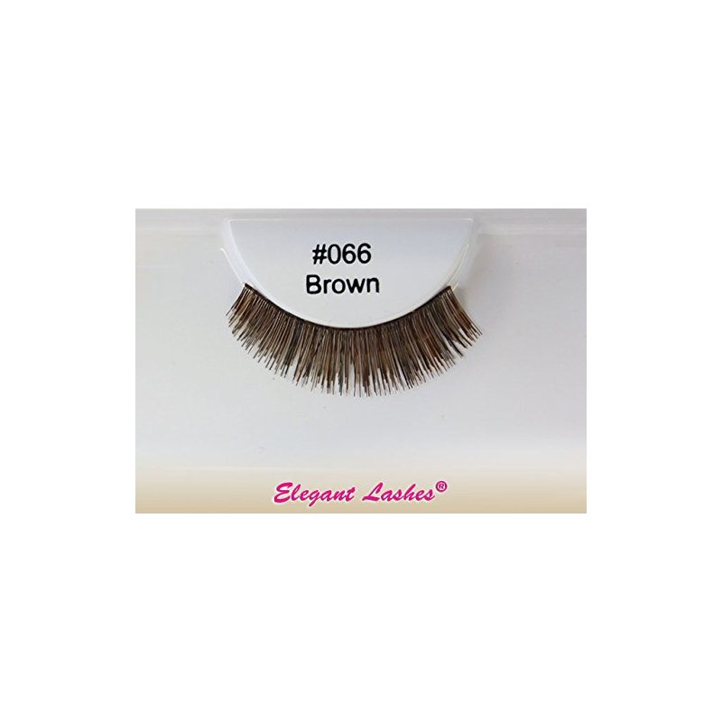 Elegant Lashes #066 Brown Lashes add instant volume to your lashes without excessive length. The shorter band also elminates the need for trimming, making #066 lashes perfect for youth, Asian eyes, or smaller eyes. **Adhesive sold separately.
