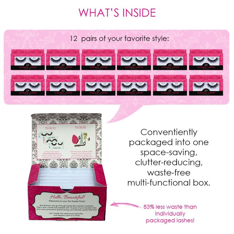 - 12 pairs of professional-quality under (bottom/lower) false eyelashes in one ultra-portable, travel-friendly, multi-functional box!
