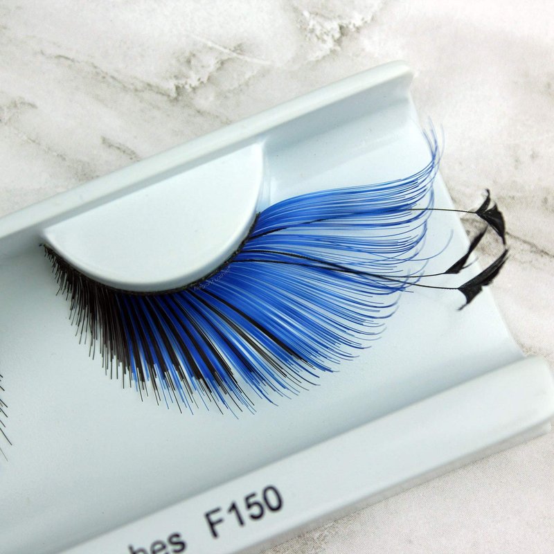Elegant Lashes F150 Premium Blue and Black Feather False Eyelashes Halloween Dance Rave Costume