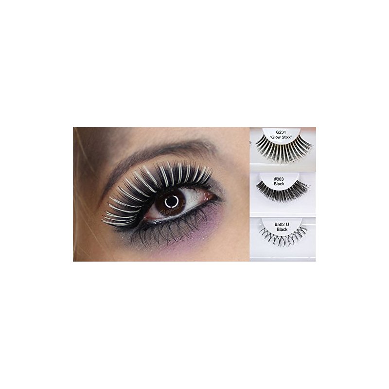 - Volumizing and lengthening black false eyelashes with white glow-in-the-dark strips