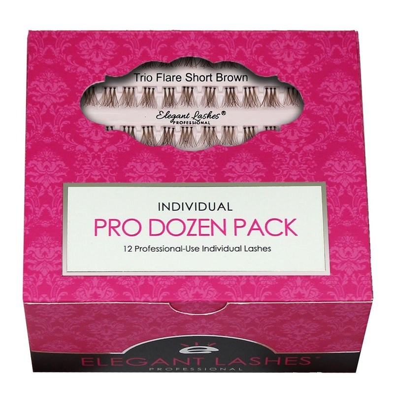 Elegant Lashes Trio Flare - SHORT Brown Individual Lashes (Pro Dozen Pack - 12 Trays)
