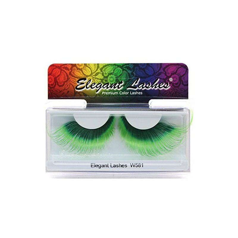 Elegant Lashes W581 "Shamrock" Premium Green Jumbo Color False Eyelashes (Pack of 6)