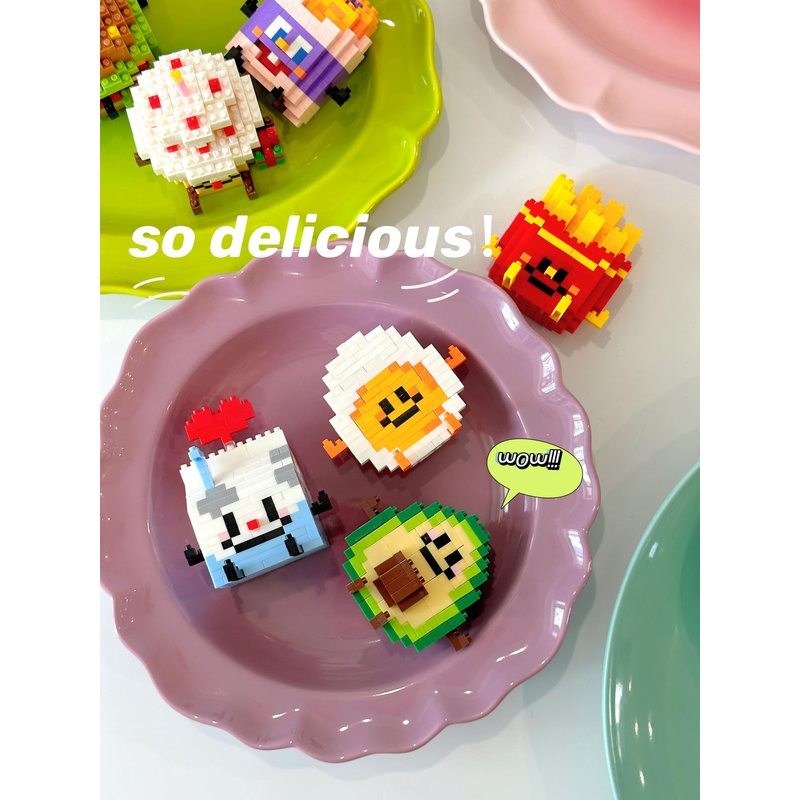 - Adorable Foodie Friends - Introduce your little ones to a world of culinary creativity with our Cartoon Foodie Micro Blocks Set. This delightful collection features 12 charming designs, including favorites like eggs, avocados, pineapples, fries, bread, and cakes.