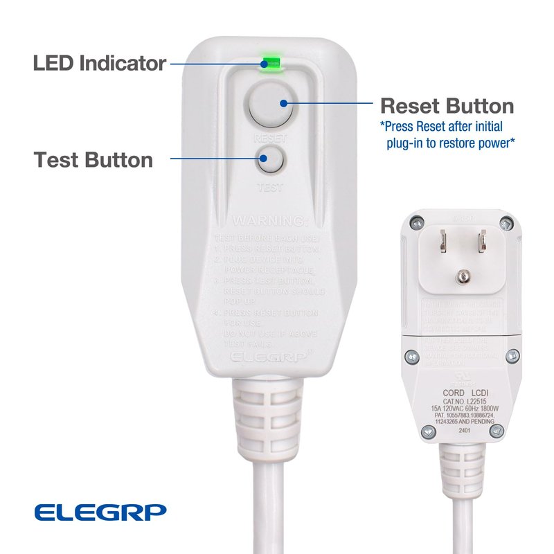 ELEGRP L22515 LCDI Power Cord 7.5FT Plug Replacement (L15515/0651515LY) for A/C Air Conditioner, NEMA 5-15P Leakage Current Detection Interrupter,120VAC 15Amp 1800W 60Hz, UL Certified.