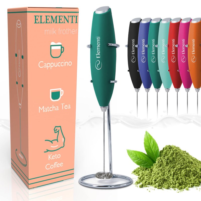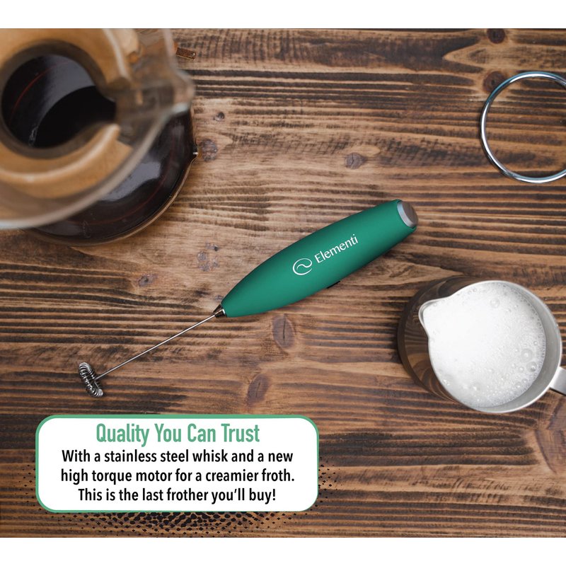 Elementi Electric Milk Frother Handheld, Matcha Whisk, Milk frother for Coffee Frother Electric Handheld Drink Mixer, Electric Mini Whisk Small Hand Mixer, Frappe Maker (Emerald Green)